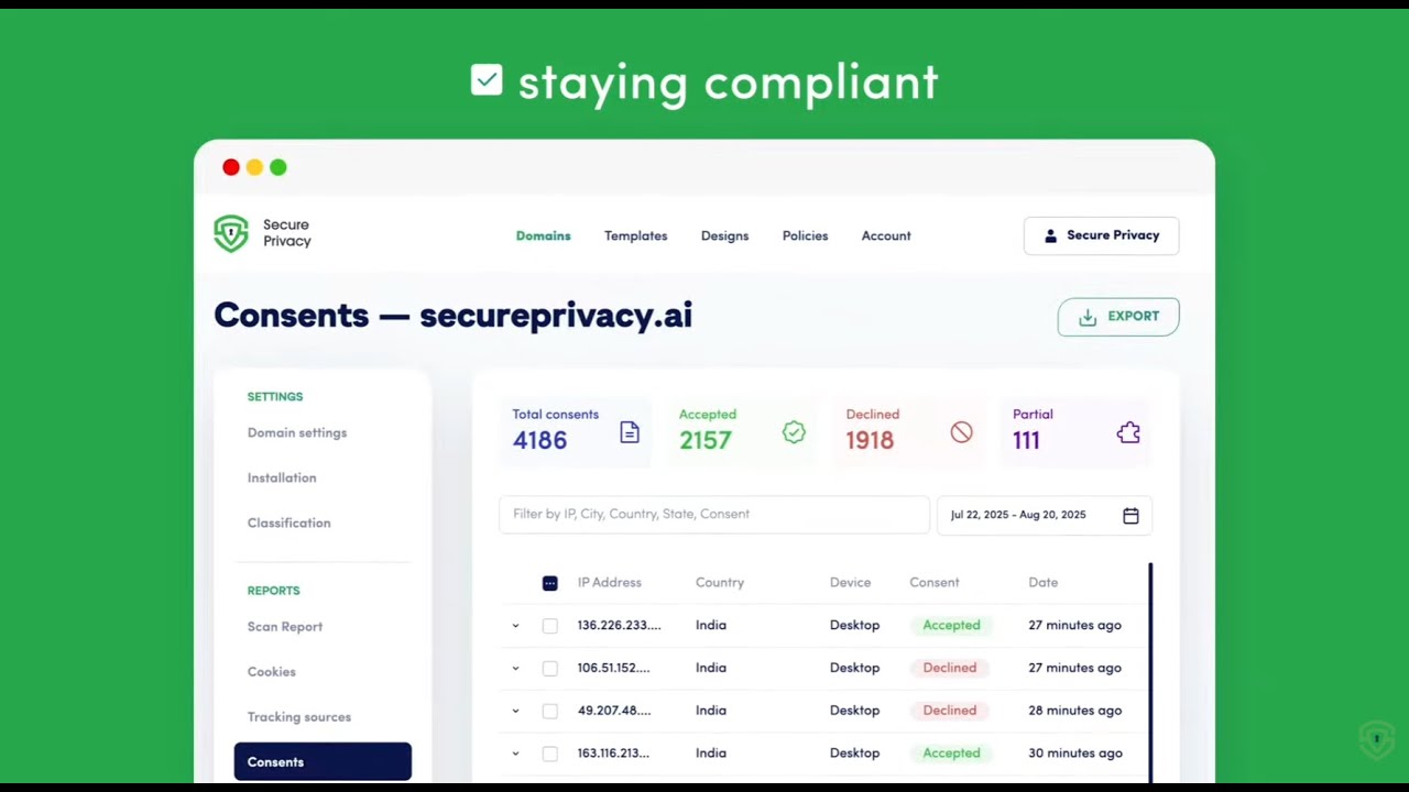 Maintain comprehensive proof of consent with tamper-proof logging and instant retrieval